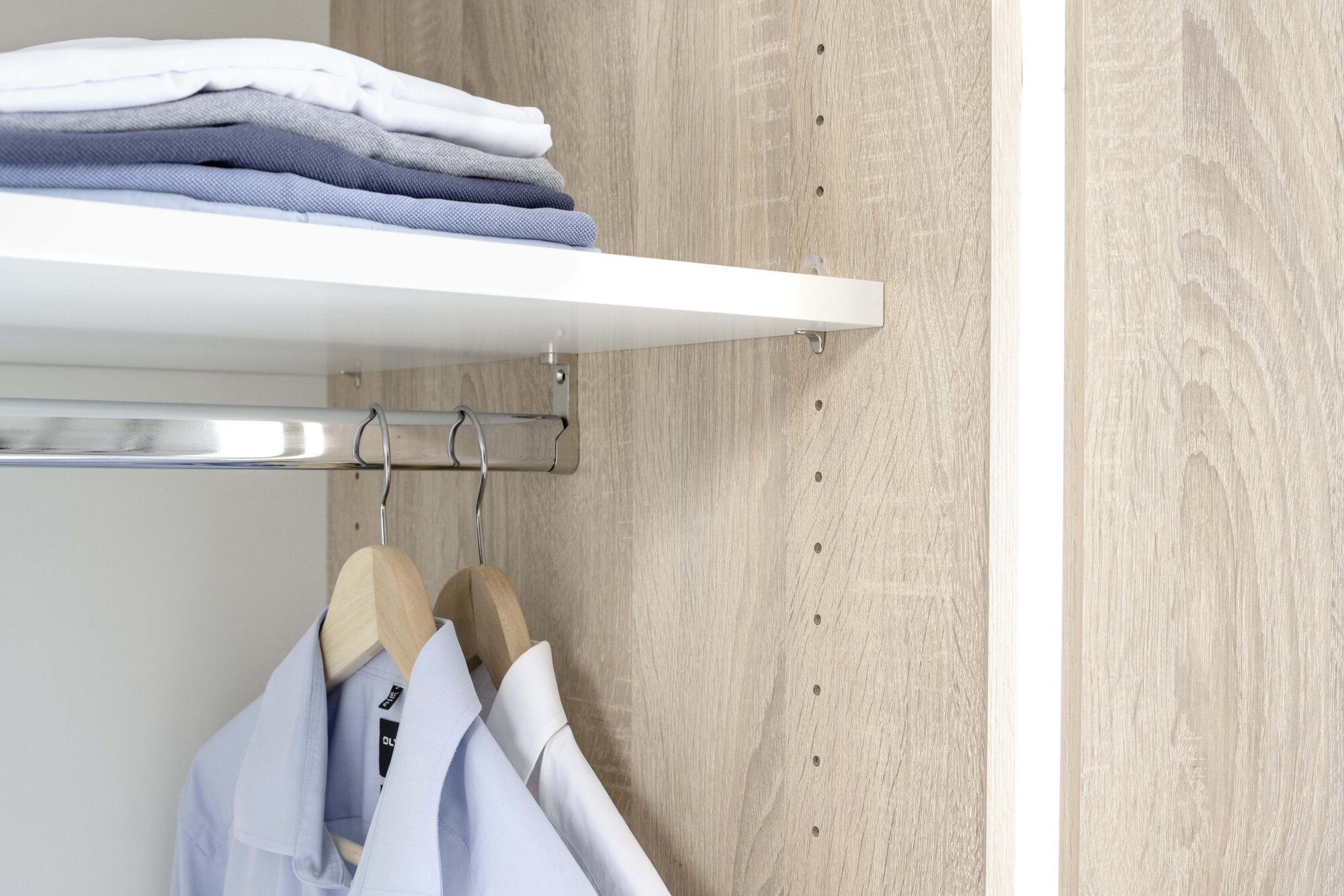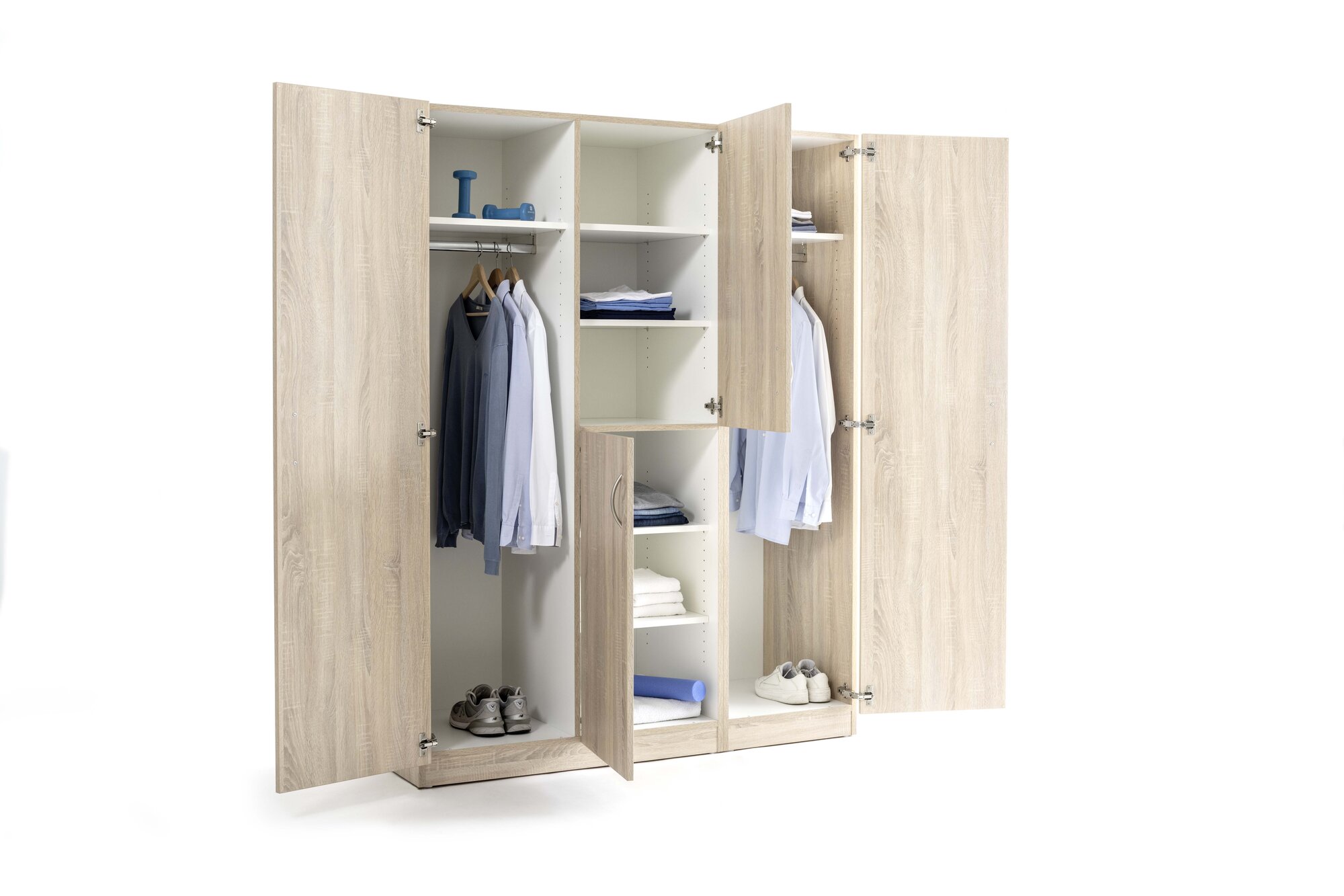 4 Flügeltüren: rechts und links 1 Flügeltür dahinter je 1 Hutboden und 1 Kleiderstange (Ovalrohr),