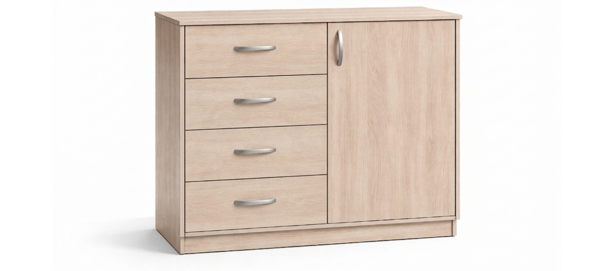 links 4 Schubkästen, rechts eine Flügeltür, dahinter 2 Einlegeböden